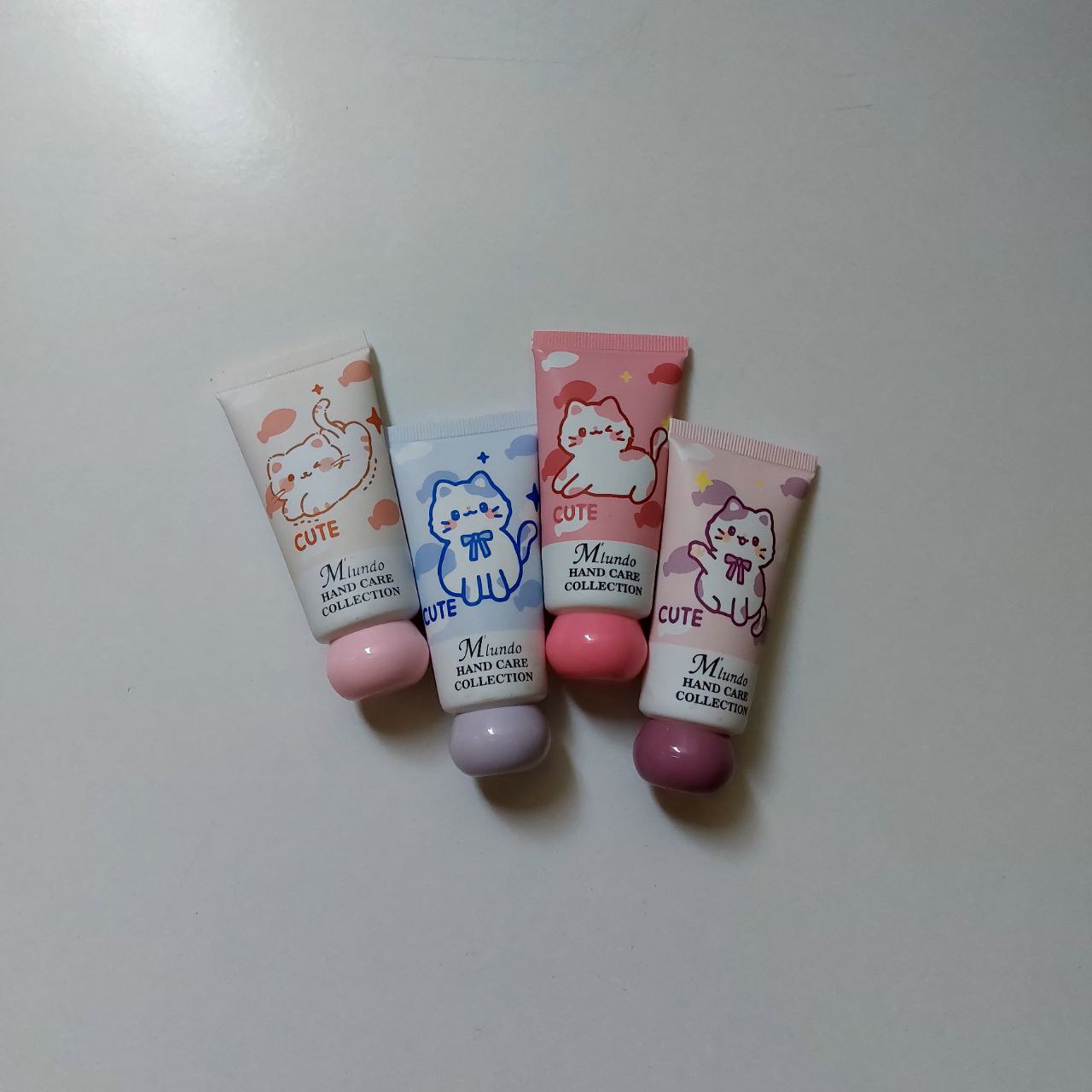 _ کرم دست پیشی برند miundo 🐈 ⋆ بافت سبک و جذب سریع ⋆ طراحی فانتزی و جمع و جور، مناسب داخل کیف ⋆ قابل استفاده برای انواع پوست